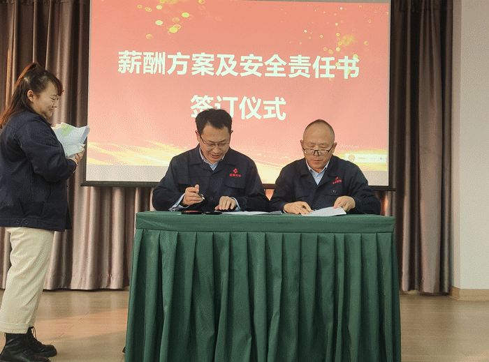 會議與管理干部、首席專家簽訂《目標責任書》、《年度薪酬方案》、《安全責任書》。